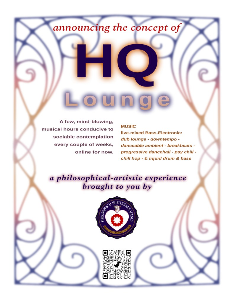 HQ Lounge events are innovative, philosophical experiences for 200-300 people in a lounge/down-tempo musical environment, as well as simulcasted to the Internet.
