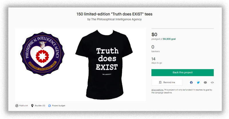 These are not merely swag, promotional, branding products. A short, bold meme on the front of a shirt – like ‘Truth does EXIST’ – has the potential to blow minds on contact. (Curious about the underlying strategy? You can read more about that below.)